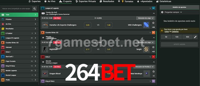 O 264bet oferece uma grande seleção de opções de apostas em e-sports com probabilidades competitivas